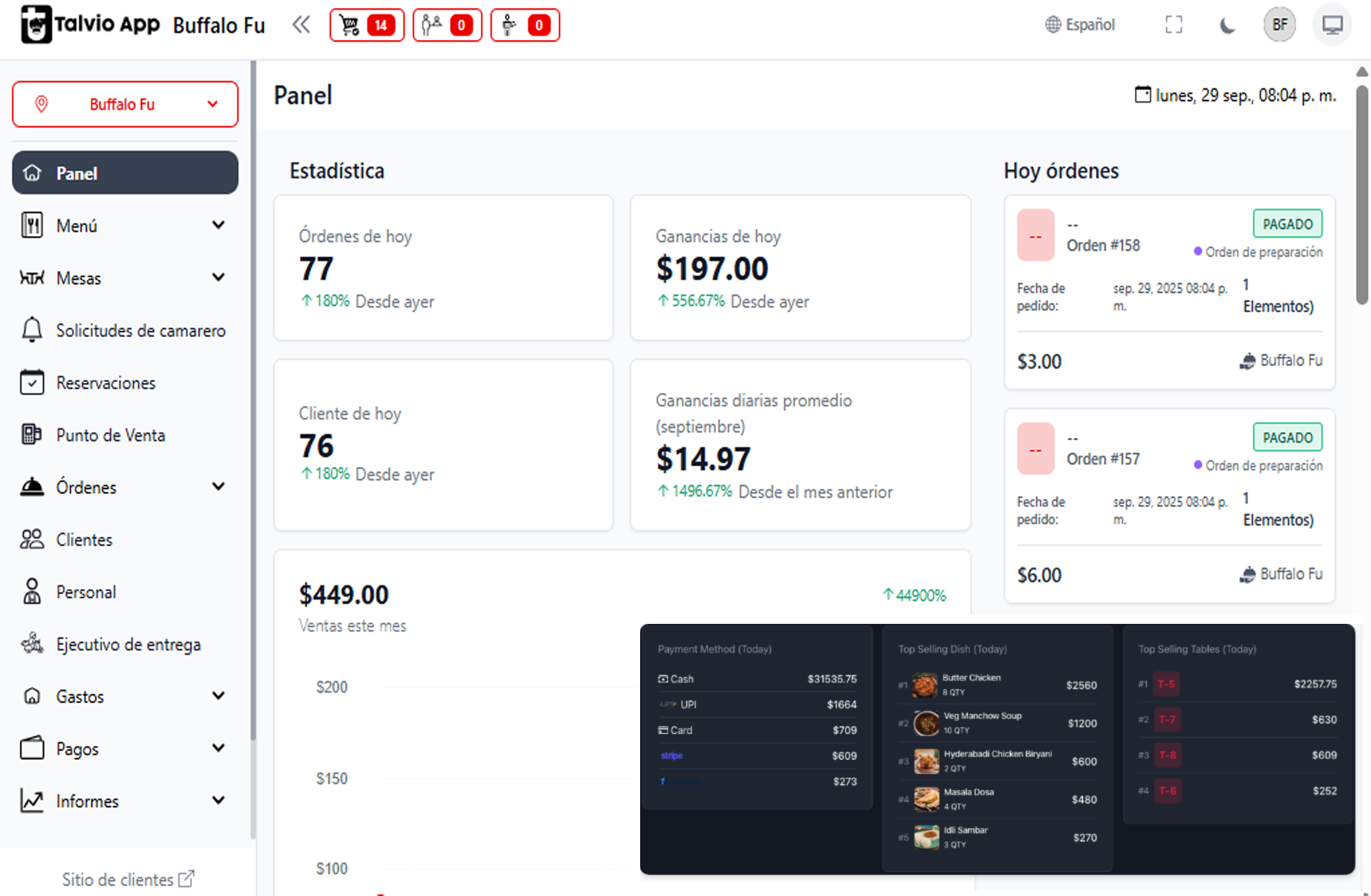 Administre fácilmente órdenes, menús y mesas en un solo lugar. Ahorre tiempo, reduzca errores y haga crecer su negocio más rápido